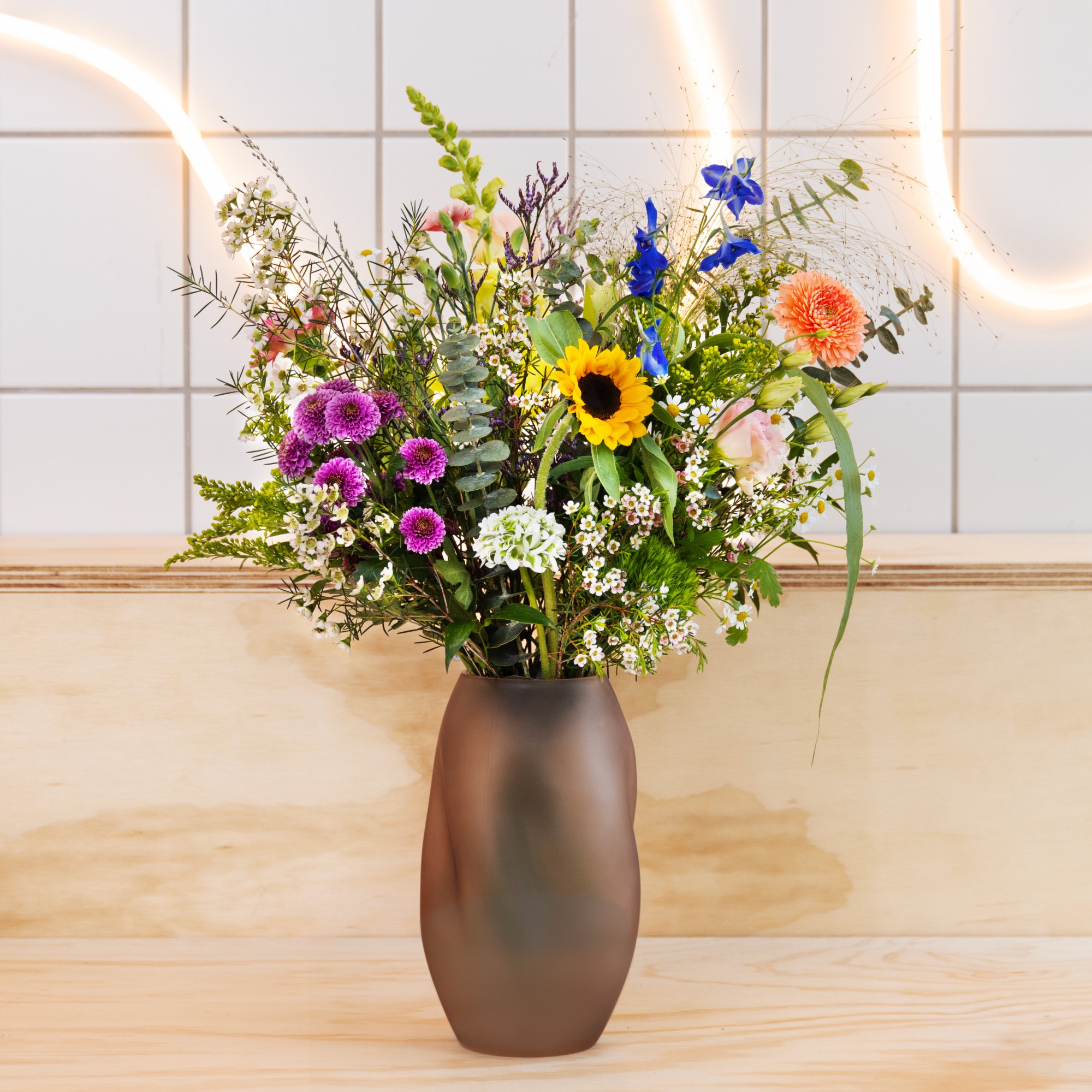 “Jeg elsker dig mor” buketten er ikke bare en almindelig buket – den er en kærlig hyldest til den vigtigste kvinde i dit liv. Buketten byder på en livlig og luftig sammensætning af friske forårsfarver og vilde markblomster. Overrask din mor med denne buket på Mors Dag og lad hende vide, hvor meget hun betyder for dig.