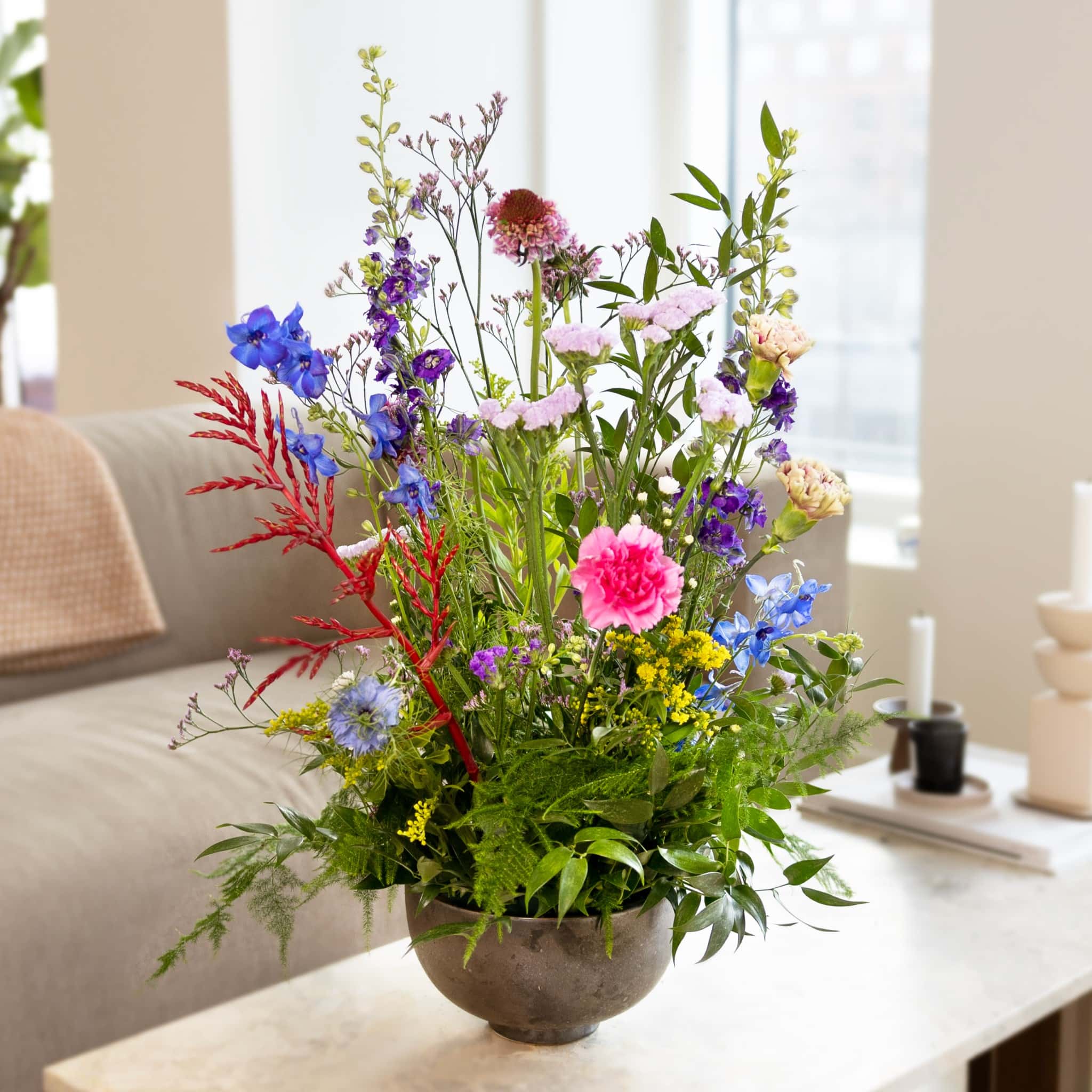 Scandinavian Decor er en høj og luftig blomsterdekoration, der for alvor bringer liv ind i hjemmet. Dekorationens lange blomsterstilke i kombination med blomsternes friske farver gør, at dekoration helt naturligt vil fremstå som et centerpiece blandt hjemmets inventar.